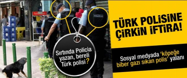 А вот еще снимок, на котором, якобы изображен турецкий полицейский, брызгающий из газового баллона в лицо собаки: