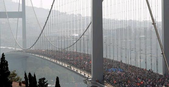 Над снимком «УП» пишет: «…сотні протестувальників йшли Босфорським мостом, щоб дістатись головної площі Стамбула». Напомню, что речь в материале «УП» идет об июньских событиях.
