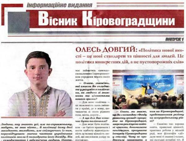 Скандально известный экс-секретарь Киевсовета времен «молодой команды» мэра столицы Леонида Черновецкого (2008-2011гг. и депутат Киевсовета до 2014 гг.) Олесь Довгий решил избираться в Верховную Раду на периферии — в Кировоградской области (округ 102, райцентр Знаменка). Выбор места обусловлен невозможностью быть избранным в Раду по месту проживания — в Киеве, где Олесь Довгий известен как мошенник и вор из т.н. «молодой команды» Л. Черновецкого. Напомним: в 2012 году Довгий баллотировался в Раду в Днепровском районе Киева, но проиграл «ударовцу» Виктору Чумаку.