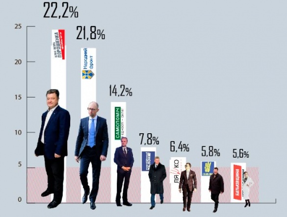 Так, наибольшее количество голосов набрал Блок Петра Порошенко. Как свидетельствуют опросы при выходах из избирательных участков, в Раде впервые за годы независимости Украины не будет Коммунистической партии Украины.