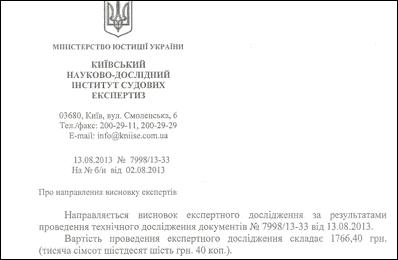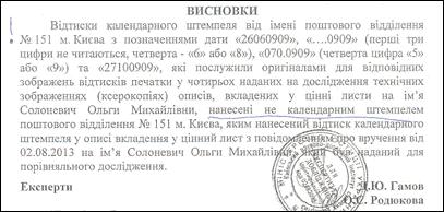 Неутешительные для мошенника выводы Киевского научно-исследовательского института судебных экспертиз по поводу почтового извещения о созыве собрания акционеров