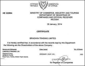 На горизонте появляется кипрский оффшор Bradwin Trading Limited