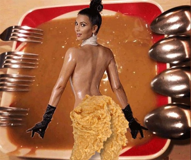 Творческие пользователи интернета представили, как бы выглядела Кардашьян, если бы вместо ягодиц немалых размеров у нее было туловище кентавра, или куриные наггетсы.