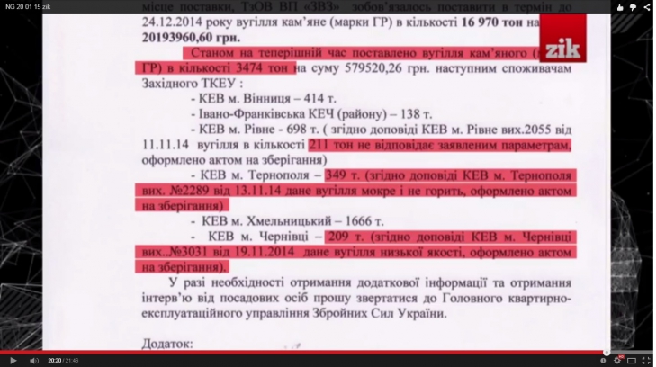 Уголь, который в декабре приобрело Западное квартирно-эксплуатационное управление Вооруженных Сил Украины (г. Ровно), оказался негорючим за плохого качества, сообщает телепрограмма «Наши Деньги» (ZIK).