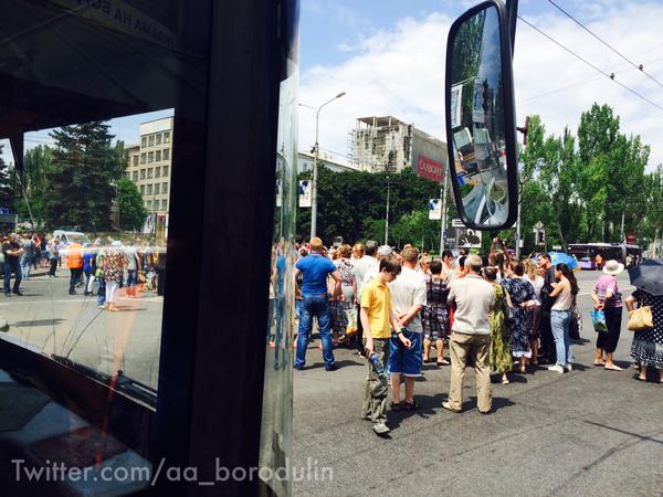 По состоянию на 14:06 Захарченко пытался успокоить людей, заявив, что войну пока остановить не удастся. Ответом ему были возмущенные выкрики из толпы: «Войну надо остановить немедленно, либо предоставить жилье (тем, кто живет на линии фронта — Ред.)». На вопрос о том, когда начнут регулярно выплачивать пенсии, Захарченко ответил: «правительство работает над тем, чтобы выплаты стали регулярными».
