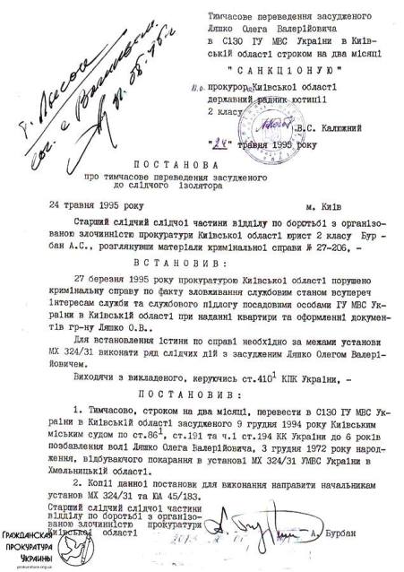 9 декабря 1994 суд признал Ляшко виновным в хищении государственного имущества, присвоении власти, подделке документов. Ему светило 10 лет, но получил только шесть. Позже суд смягчил статью на мошенничество.