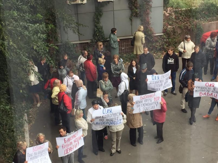 Дело в том, что в это же самое время недалеко от «Батькивщины» происходил другой пикет – акция Ассоциации обманутых вкладчиков банка «Форум». Активисты пикетировали офис кандидата в мэры Кривого Рога, лидера местной организации партии «Видродження» Константина КАРАМАНИЦА. Участники пикета обвиняли его в том, что его фирмы взяли кредиты в банке «Форум» на сумму более 270 млн. грн и не вернули (фирмы сейчас банкроты или ликвидированы), что, в свою очередь, привело к банкротству и ликвидации банка «Форум».
