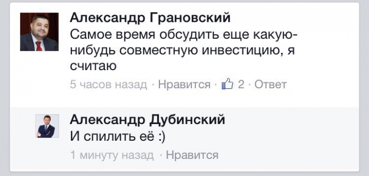 «Младший партнер Игоря Кононенко Александр Грановский пишет, что его партнер Адамовский и Хилар Тедер порешали вопрос со Скаймолом, который отжимали у эстонца. И даже думают над другими совместными проектами. Ага», - пишет Дубинский.