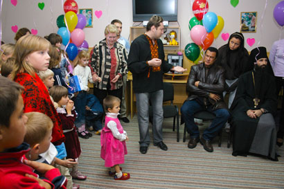 Также Юрий Стець привез к детям клоунов, представление от которых дети смотрели вместе с ним и Сигалом.