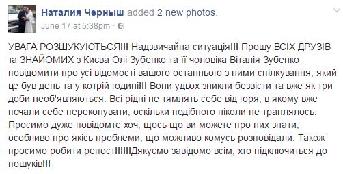 Пропавшие киевляне - Виталий и Ольга, фото: facebook.com/natalia.vasilenko24