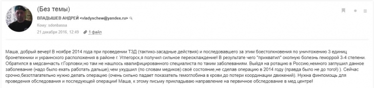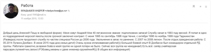 Волонтеры рассмотрели переписку Андрея Степановича Владышева (vladyschew@ya.ru), 1975 г.р., житель Красноярска, опытный российский кадровый военнослужащий, чья судьба более чем показательна.