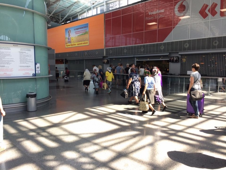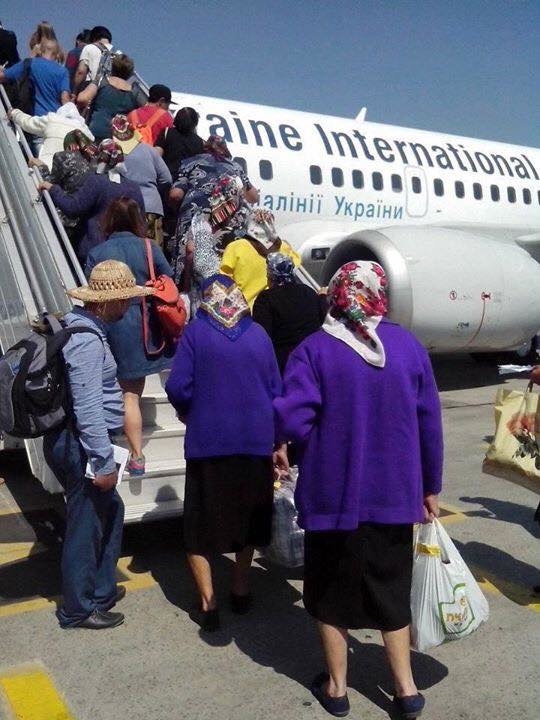В сети появились снимки пенсионерок с пакетами и сумками, ожидающих посадки на самолет в аэропорту "Борисполь".
