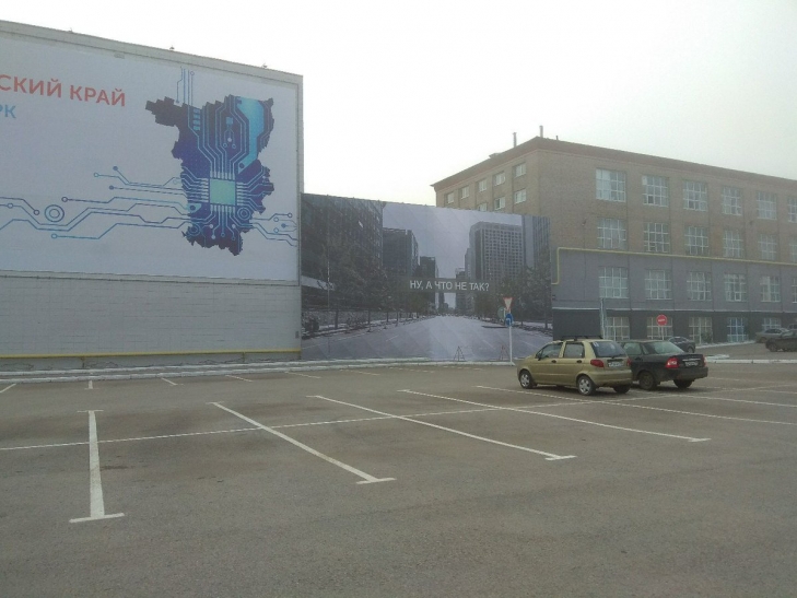 Неприглядный вид на руины бывшего завода «Морион» в Перми загородили баннером с изображением Пекина