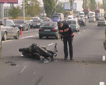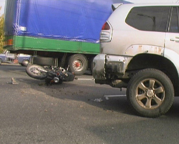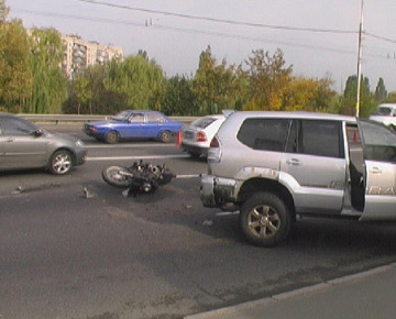 В Киеве на проспекте Воссоединения, 21 не разминулись внедорожник с мотоциклом