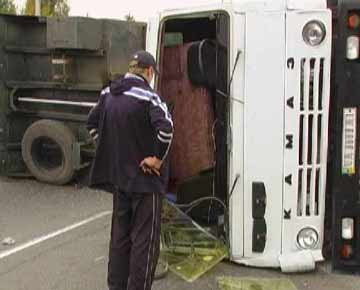 В Киеве столкнулись "КаМАЗ" и "МАN", от удара "КаМАЗ" перевернулся