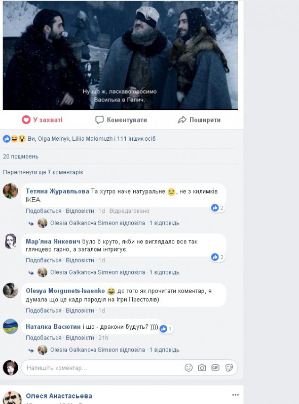 "Блин. Я действительно думала, это Игра престолов", - отметила Olga Melnyk.
