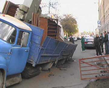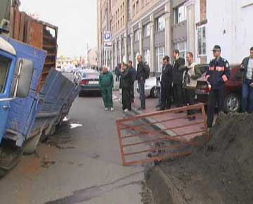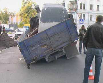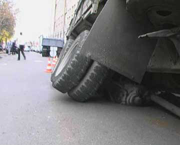 На Подоле (Киев) "ушел" под асфальт грузовик