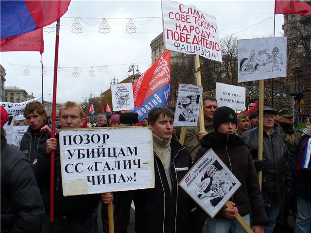 В частности, на транспаранте было написано: «Позор убийцам СС «Галиччина!».
