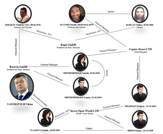 Так, через Наталью Власову, которая была личной помощницей, Виктора Януковича, Слуцкомуи Израилиту ранее отдавались распоряжения относительно развития бизнеса, в интересах Януковича. Также СМИ сообщили, что в 2017 г., учитывая продолжающиеся общение семьи Виктора Федоровича с Израилитом и Слуцким, он отдавал распоряжения о создании и развитии в Германии Kapis GmbH, как дополнительного источника доходов, пока он скрывается от правительства Украины.