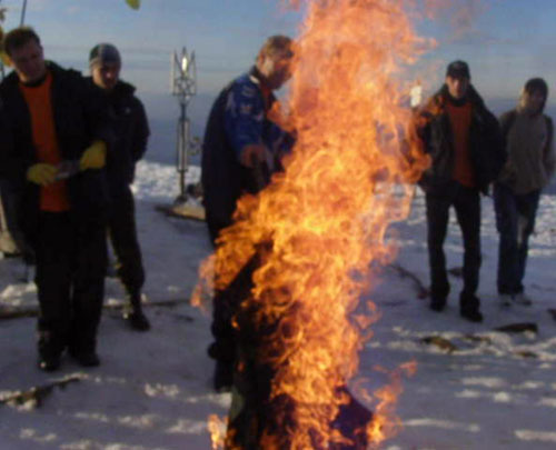 Украинские патриоты о 16:00 поднялись на наивысшую вершину Украины, где трофейным флагом евро-азиатов, сначала помыли уничтоженную доску, а затем и свою обувь. Финалом акции стало сжигание флага. Также представители НА, вместе с другими представителями патриотических молодежных организаций, приняли участие в развертывании наибольшего украинского национального флагу возле горы Говерлы.