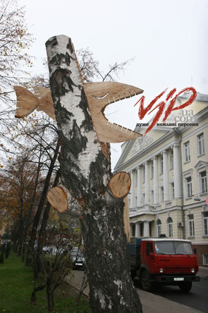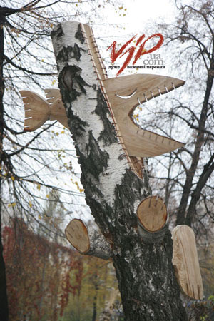 Напротив Министерства по вопросам чрезвычайных ситуаций, на углу улиц Чапаева и Коцюбинского обнаружен интереснейший объект. Спиленный ствол березы неизвестный скульптор преобразил в крокодила, держащего в пасти рыбку. У местных жителей нет сомнений – это памятник мистическому крокодилу, преследующему министра по чрезвычайным ситуациям Нестора Шуфрича, передает VIP-ua.