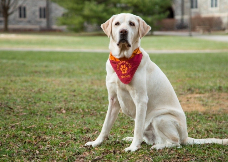 Трент Дэвис, который работает в консультационном центре университета уже 10 лет, рассказал, что его пес Лось помогает студентам ощутить комфорт и расслабиться во время бесед с психологами.