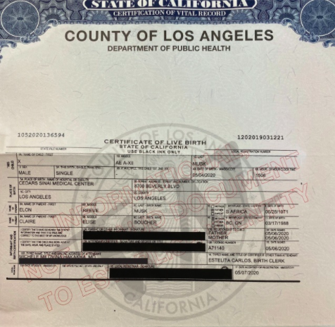 Илон Маск и певица Граймс получили свидетельство о рождении сына. В документе его имя прописано как X AE A-XII Маск. Об этом сообщает TMZ.