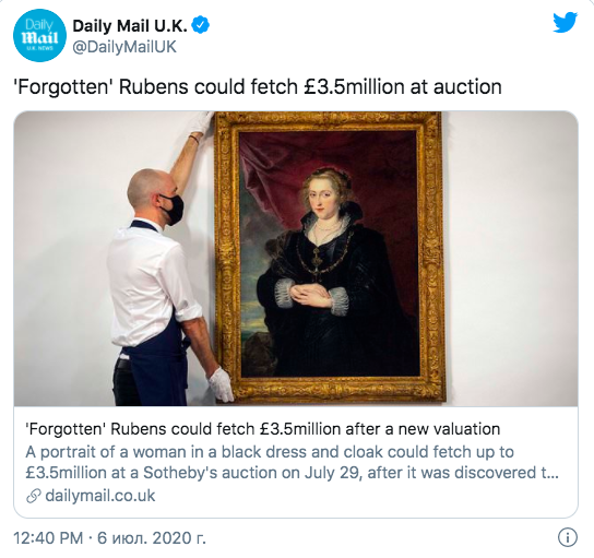 В Лондоне обнаружили картину нидерландского живописца Питера Рубенса «Портрет дамы» (XVII в.), которая пылилась в частной коллекции почти 140 лет. Об этом пишет Daily Mail.