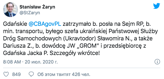 Прокуратура Варшавы уже предъявила обвинения задержанным. По данным издания, Новаку предъявили шесть обвинений. Преступления якобы связаны с периодом когда он руководил Укравтодором.