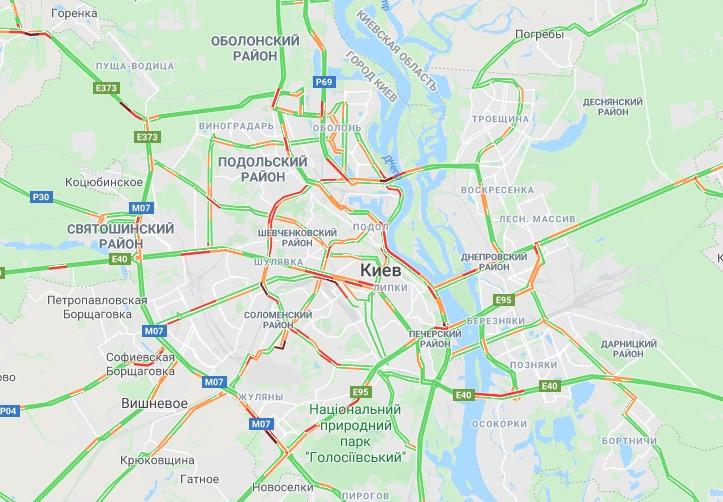 Наиболее существенные пробки наблюдаются на улице Юрия Ильенко в районе станции метро Лукьяновская в направлении в центр и в районе Почтовой площади.Также проблемы с трафиком имеют место на проспекте Победы на участке между станциями метро Политехнический институт и Университет по направлению в центр.