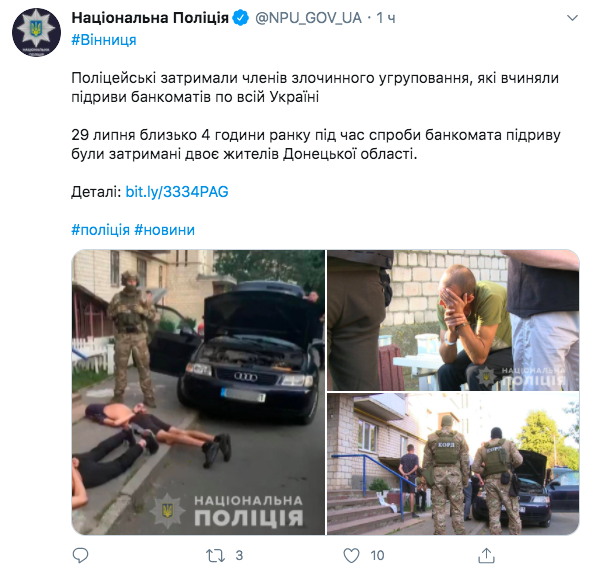 Полиция и бойцы спецподразделения КОРД задержали в Виннице членов банды, которые подрывали и грабили банкоматы по всей стране. Об этом сообщает пресс-служба Национальной полиции.