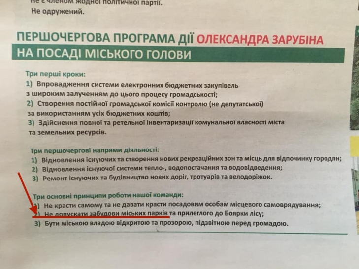 2015 - на обіцянках зупинити забудову парку до влади приходить О.Зарубін