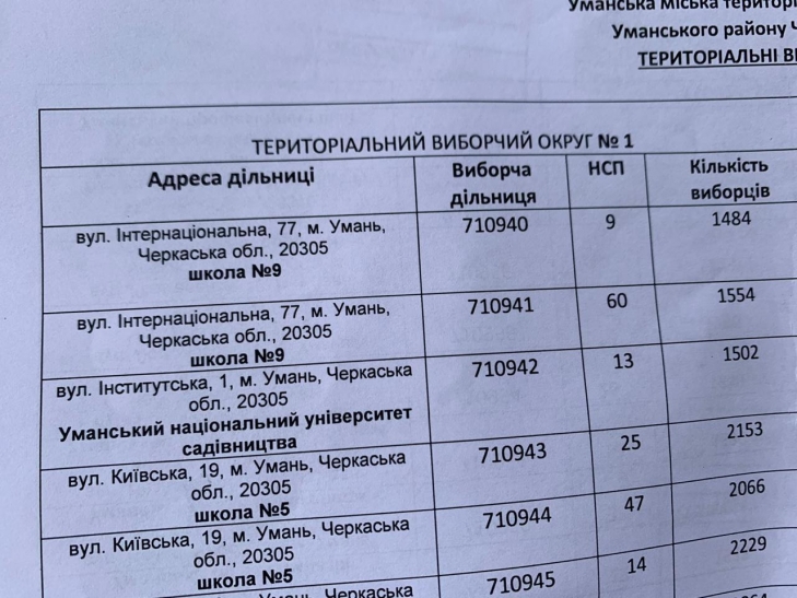 Самый высокий показатель фальсификаций на выборах фиксируется на участках с людьми, которые считаются не способными самостоятельно передвигаться (НСП). Так на одном из участков Умани было зафиксировано нарушение со стороны кандидата от партии «Пропозиция». Наблюдателям удалось заснять на видео женщину, которая несла паспорта с избирательного участка 710941 (Дом престарелых по адресу г. Умань, ул. Мичурина, 7).