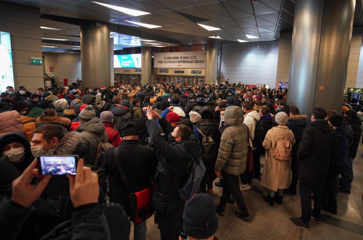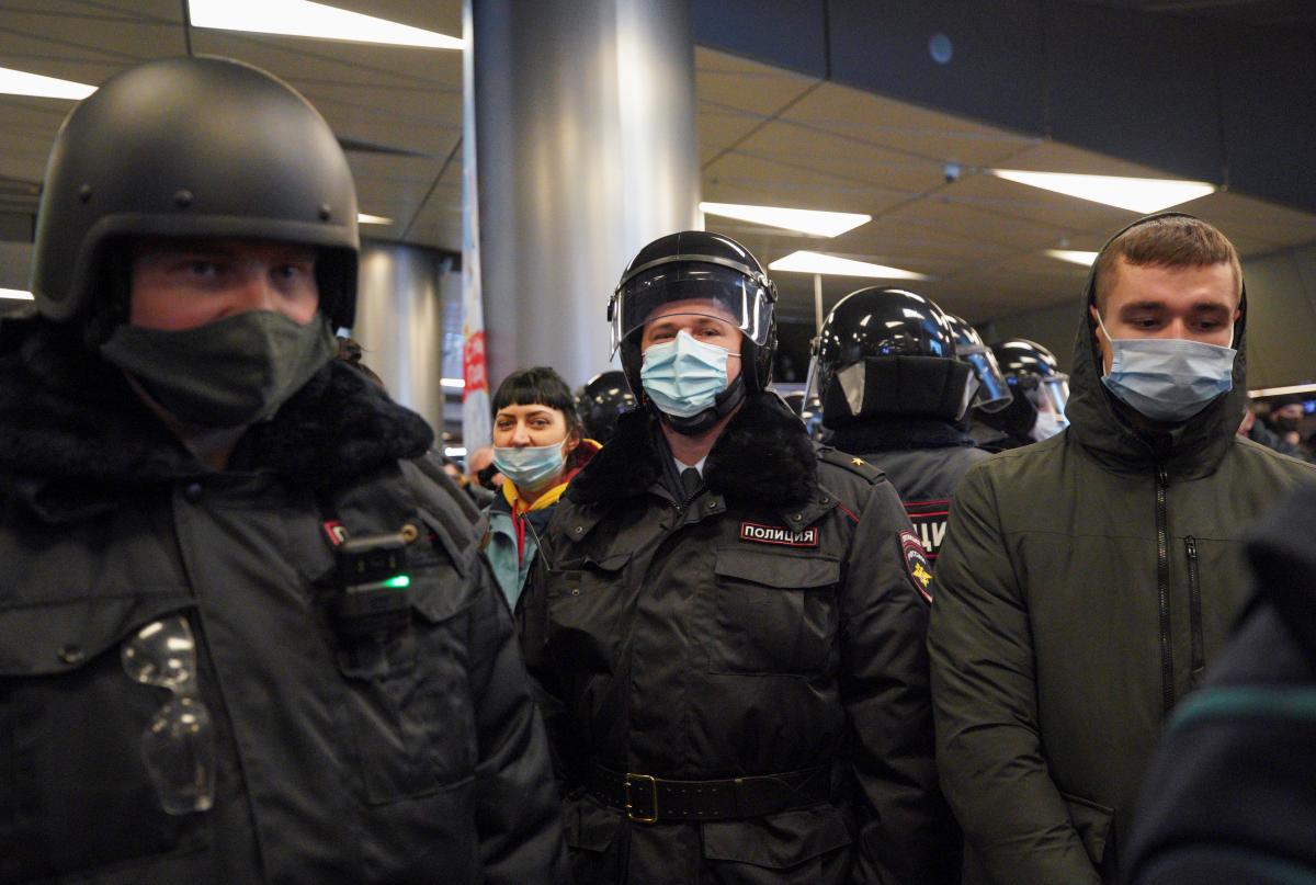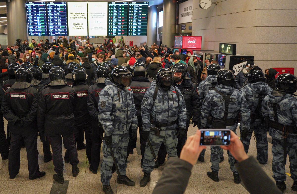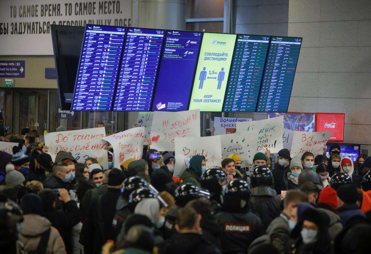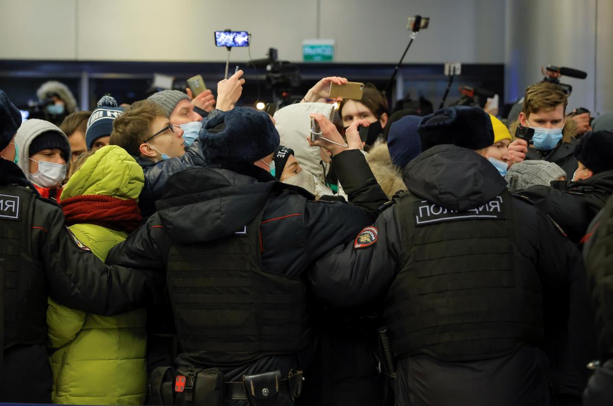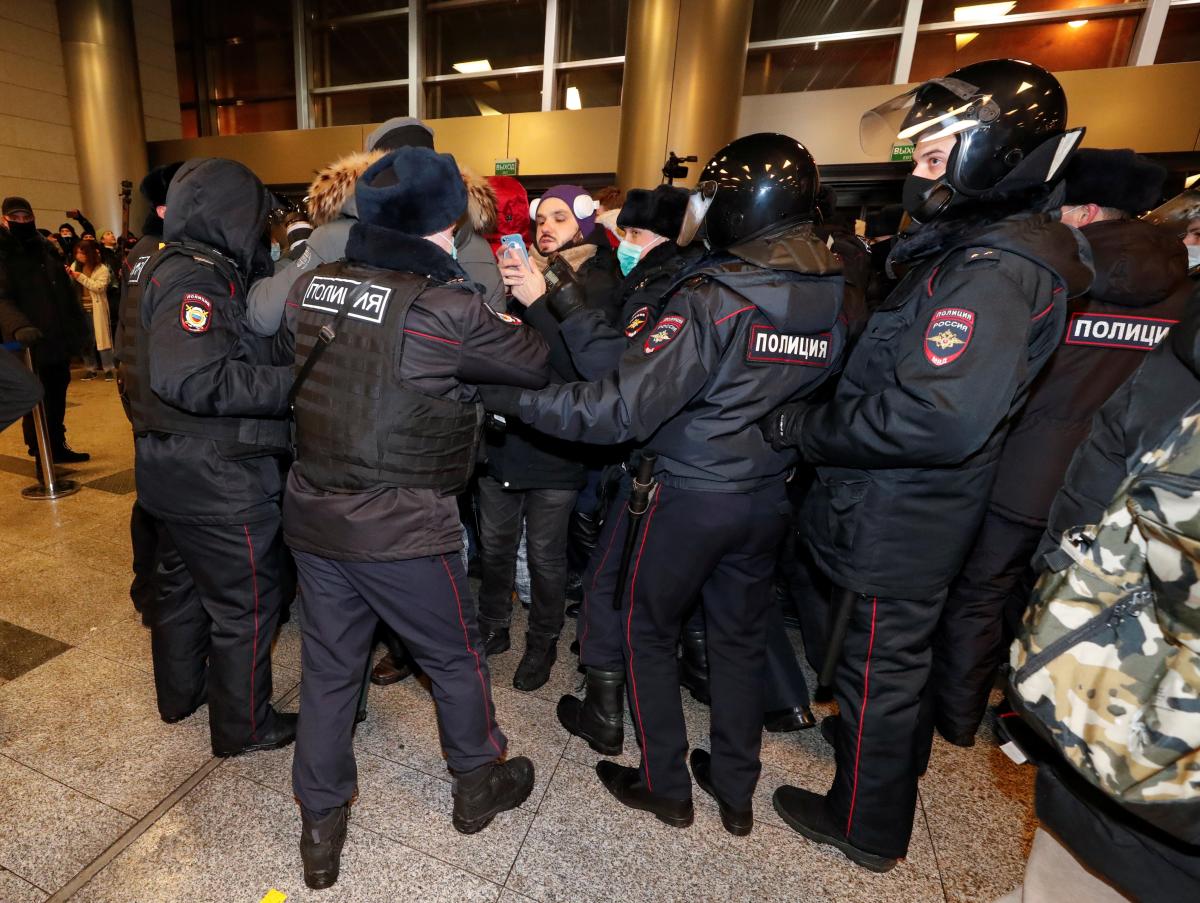 Во «Внуково» ОМОН вытеснил людей на улицу, которые собрались встречать Навального, после начал задержания. По данным ОВД-Инфо, всего задержали 37 человек.