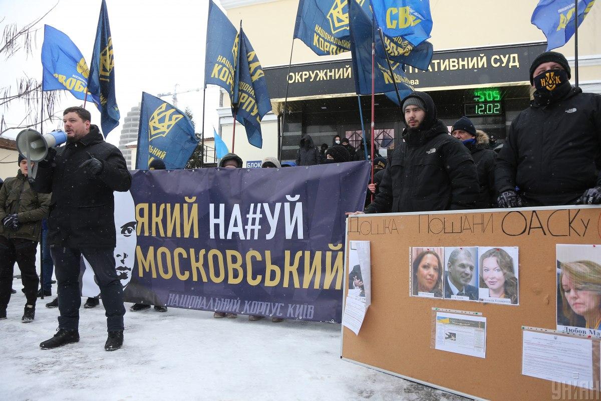 Активисты призвали президента Украины Владимира Зеленского ликвидировать Окружной административный суд Киева из-за отмены им решения Киевского городского совета о переименовании Московского проспекта в проспект Степана Бандеры. Как передает корреспондент УНИАН, возле здания ОАСК проходит акция, участие в которой принимают более 50 активистов партий «ВО «Свобода» и «Национальный корпус».