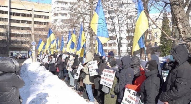 “На данный момент французская компания Ашан через продажные украинские суды, а также через депутата от правящей партии „Слуга народа“ Галины Янченко пытается надавить на украинские правоохранительные органы и заставить изменить решение по ряду крупных земельных споров. По сути, Ашан украл украинскую землю, поменял ее назначение и теперь пытается выставить это как атаку на иностранных инвесторов. Мы всегда рады иностранным инвесторам, но нам не нужны иностранные бандиты. Поэтому мы собрались тут, чтобы обратить внимание французского посольства на действие французской компании в Украине”, — заявила участница митинга Ольга Проскура, которую цитирует УНН.