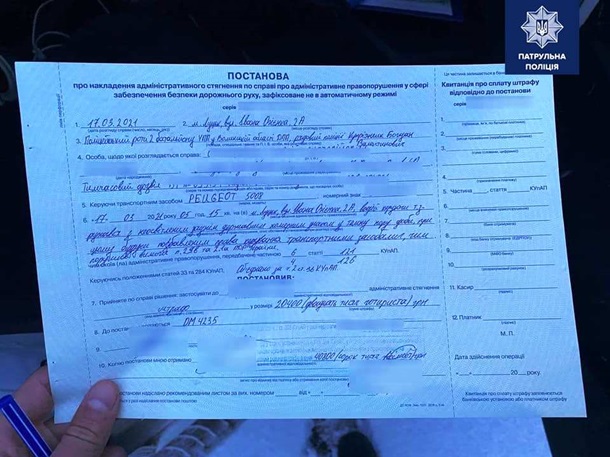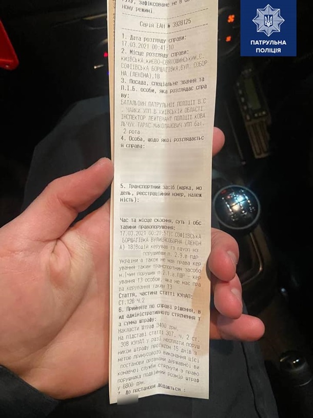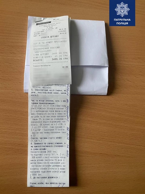 "Другой водитель в Ровно еще даже не получал водительское удостоверение, а уже сел за руль, нарушил ПДД и получил постановление от патрульных. Пусть этот случай будет для него хорошим уроком. Он получил штраф согласно ч. 2 ст. 126 КУоАП. Ранее штраф за такое нарушение был 510 гривен, а с сегодняшнего дня взыскание налагается в размере 3 400 гривен", - пояснил замначальника департамента патрульной полиции.