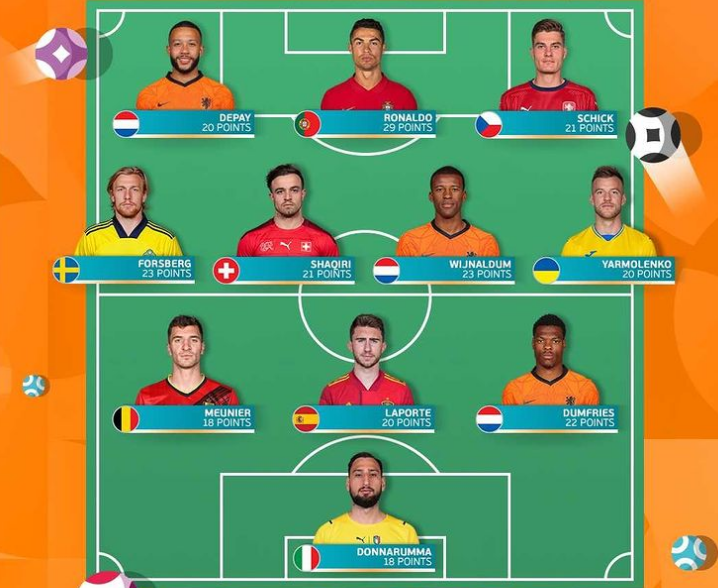 Примітно, що в команду увійшли відразу три футболісти збірної Нідерландів, яка виступала в одній групі з Україною: Мемфіс Депай, Джорджиніьо Вейналдум і автор переможного гола у ворота нашої команди Дензел Дюмфріс.