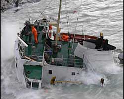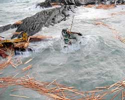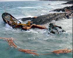 На борту судна, перевозившего 2 400 тонн пиломатериалов, находились и 12 членов экипажа, которым угрожала смертельная опасность – к ним не могли подойти спасательные суда без риска оказаться на тех же камнях.