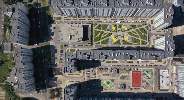 Это - масштабный комплекс из 17-ти высоток в 16 этажей каждая, на территории которого оборудован зеленый двор с местами для отдыха, детскими площадками и другими объектами, необходимыми для комфортной жизни и получения важных бытовых услуг.