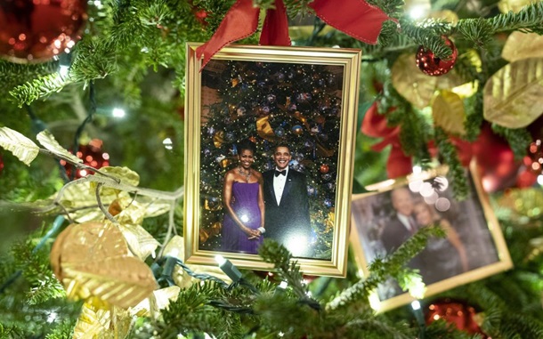В резиденции установили 41 рождественскую елку. Одну из них украсили фотографиями бывших глав государства и первых леди, включая Дональда и Меланию Трампов.