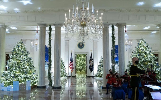 Для действующего главы государства Джо Байдена и его супруги Джилл это будет первое Рождество в Белом доме. По словам первой леди, украшения объединены темой Подарки от сердца.