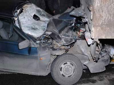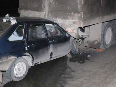 В четверг, 3 января, примерно в три часа ночи на Жилянском путепроводе ВАЗ, ехавший в сторону Одесской площади, столкнулся с припаркованным КаМАЗом.