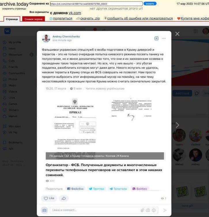 Обнаружив у себя "внезапную" утечку информации к СБУ, о подготовке ФСБ терактов в Крыму, "великие стратеги" решили сыграть на опережение и попытаться скормить украинским СМИ фальшивые документы, чтобы дискредитировать Украину и подловить на "фейках".