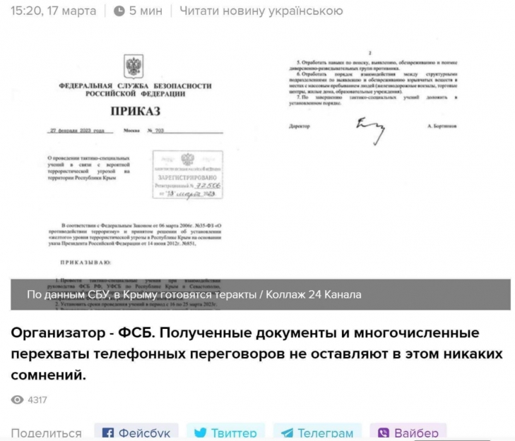 Но компетентные украинские журналисты быстро раскусили подделку. Тогда ФСБшники прибегли к фотошопу, чтобы создать фальшивые скрины из известных украинских СМИ и начали активно распространять их в интернете, сообщает "Матрица свободы".