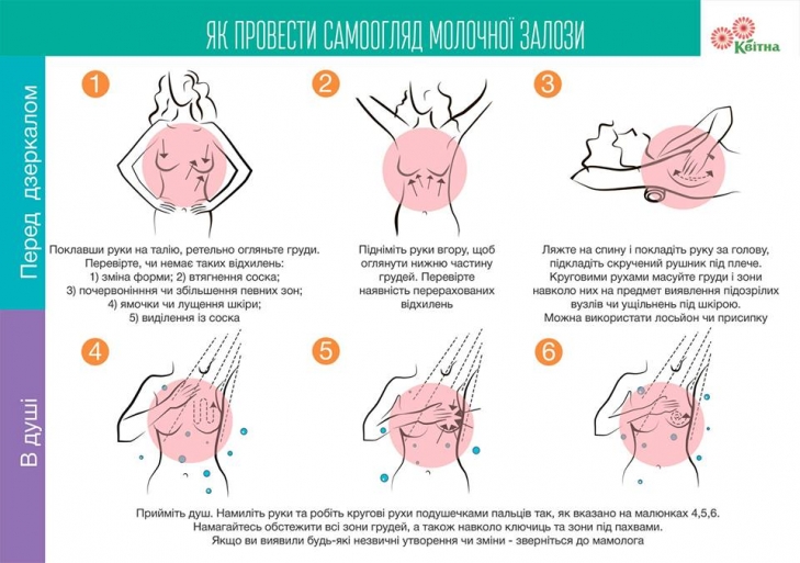 Інфографіка, яка показує, як правильно робити огляд грудей.
