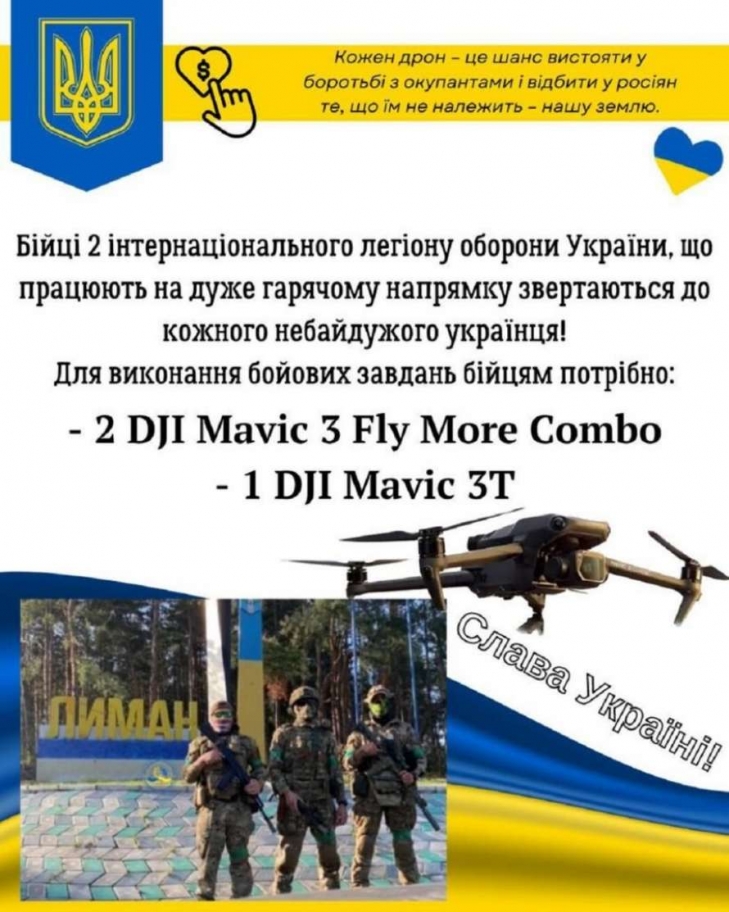 Долучайтесь до збору на дрони для бійців 2 інтернаціонального легіону оборони України, що працюють на дуже гарячому напрямку.