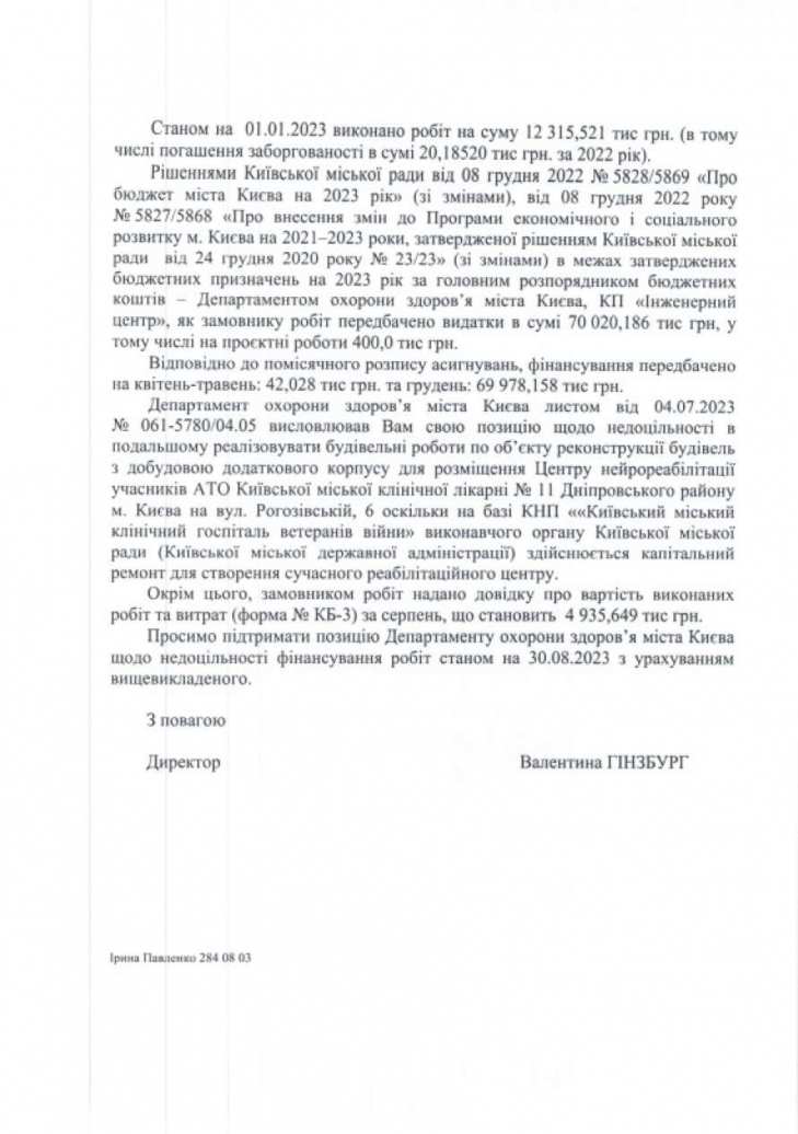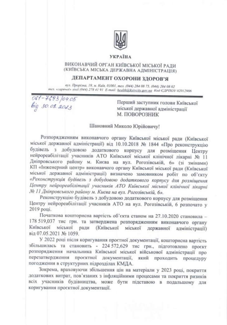 Як стало відомо редакції, вони вирішили направити у три рази більше коштів ніж потрібно на побудову нового сучасного центру нейрореабілітації - більше ніж 500 млн. гривень на ремонт фасаду та заміну вікон приміщення у Пуща-Водиці. Що цікаво, те що центр в Пущі-Водиці вже відремонтований, а тендери та документи будуть тільки проводитись.