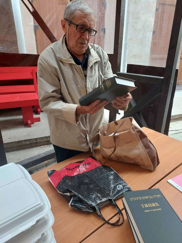 Сьогодні близько 60 осіб отримали їжу та священну книгу Тора за підтримки некомерційної організації Ахдут. Під час події організатори розповіли, що такі гарячі обіди будуть щотижня отримувати всі нужденні, які звернулись до синагоги.