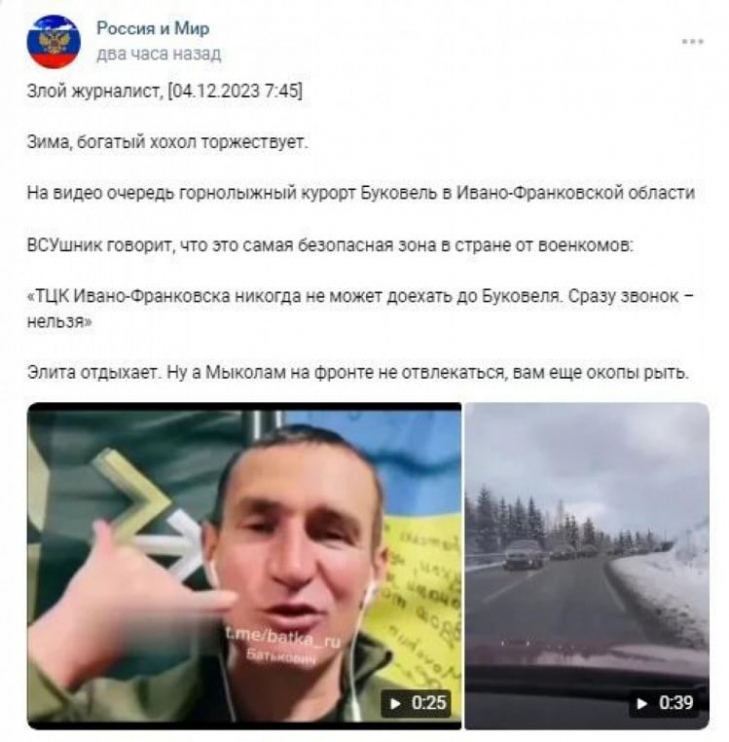 Курорт Буковель потрапив під приціл російського ІПСО. Для інформаційної атаки використовують старе відео та фейки про начебто недоторканість курорту для співробітників ТЦК. Цю інформацію розганяють як російські, так і українські медіа.